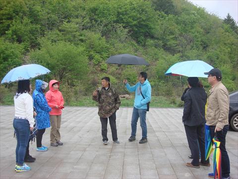 冒着寒雨,大家循着先烈的足迹,瞻仰了位于桓仁县镇西八里甸子镇老岭沟村的抗联烈士陵园,并参观了老秃顶抗联根据地遗址。全体成员在桓仁抗联烈士陵园举行了简单而隆重的瞻仰纪念活动,通过听取一位抗联后人的详细介绍,回顾了那段可歌可泣的抗战岁月,学习了杨靖宇、韩震等抗联英雄向死而生、保家卫国的革命精神。通过追忆红色历史,重温抗联精神,深切缅怀抗联先烈的丰功伟绩,激发爱国主义激情。