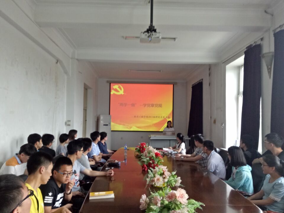 月20日,2013级研究生党支部在主楼三楼会议室召开支部会议,以“学党章党规”为主题,开展党课学习。